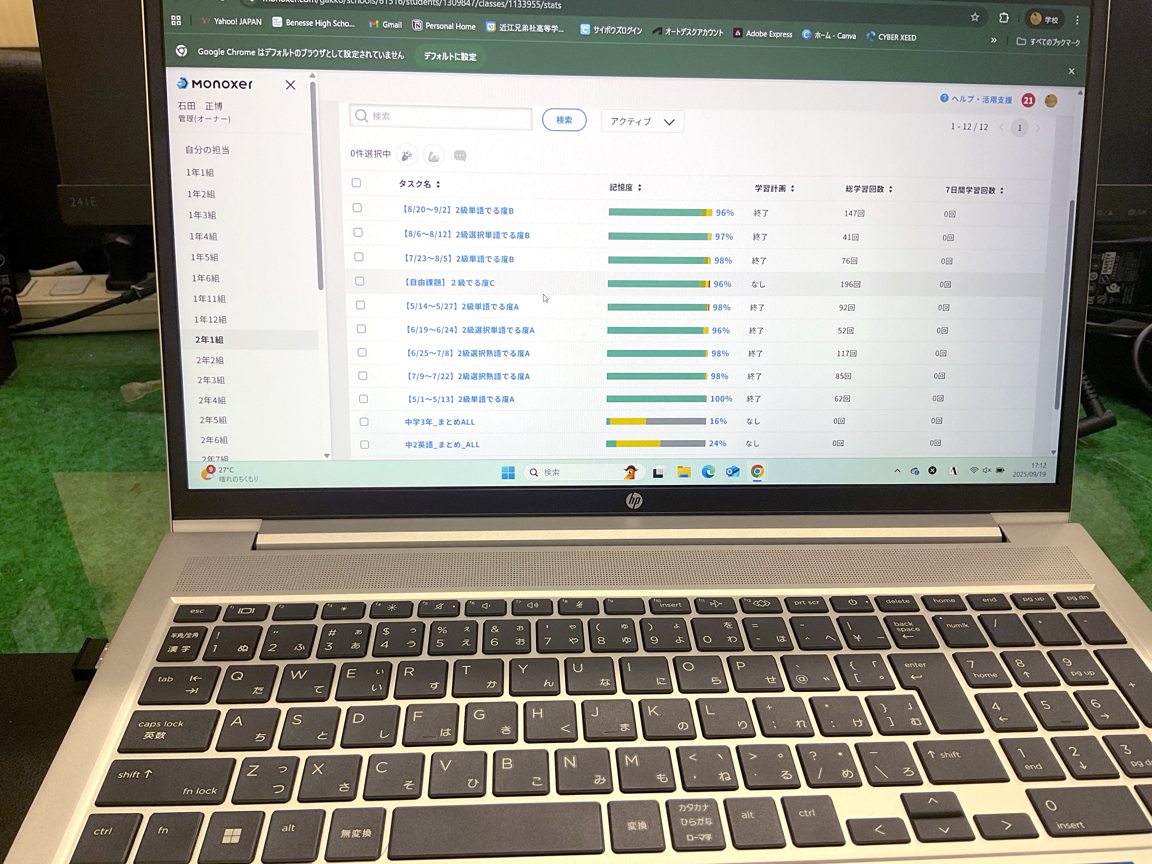 保護者会などでお話しすることはありますが、全体に向けた発信はあまり行っていません。ただ、実際にご家庭での様子を伺うと「家でスマホやChromebookを使って一生懸命取り組んでいる」と好評をいただくことが多いです。生徒が努力している姿を保護者の方が直接確認できるのも、Monoxerを導入して良かった点の一つですね。