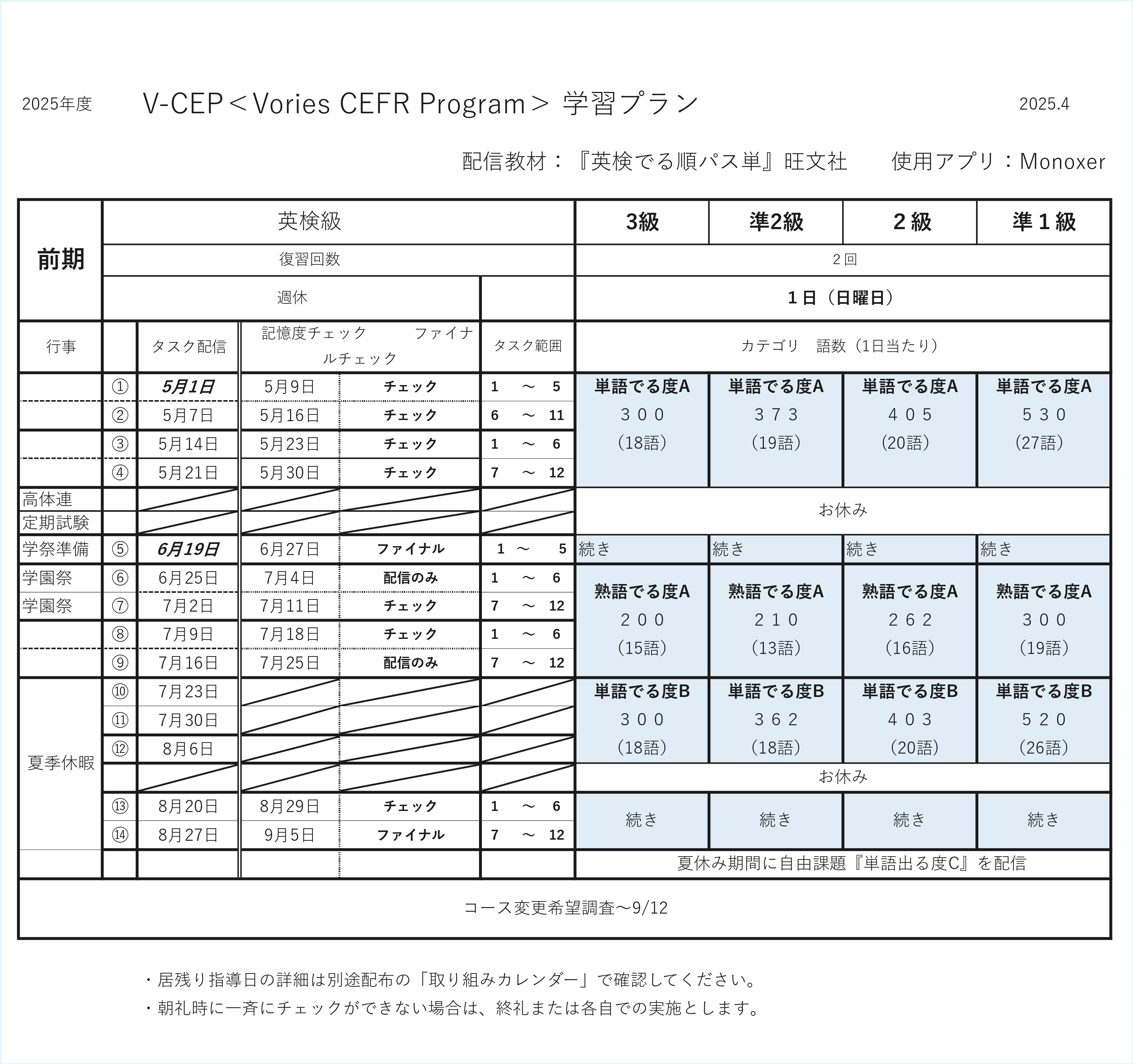 まずは語彙力と文法力の強化に注力しており、Monoxerは各自で継続して取り組める語彙ドリルの役割を担ってもらっています。1次対策としては、昨年度までは放課後塾で英語科で各級の講座を開設していました。