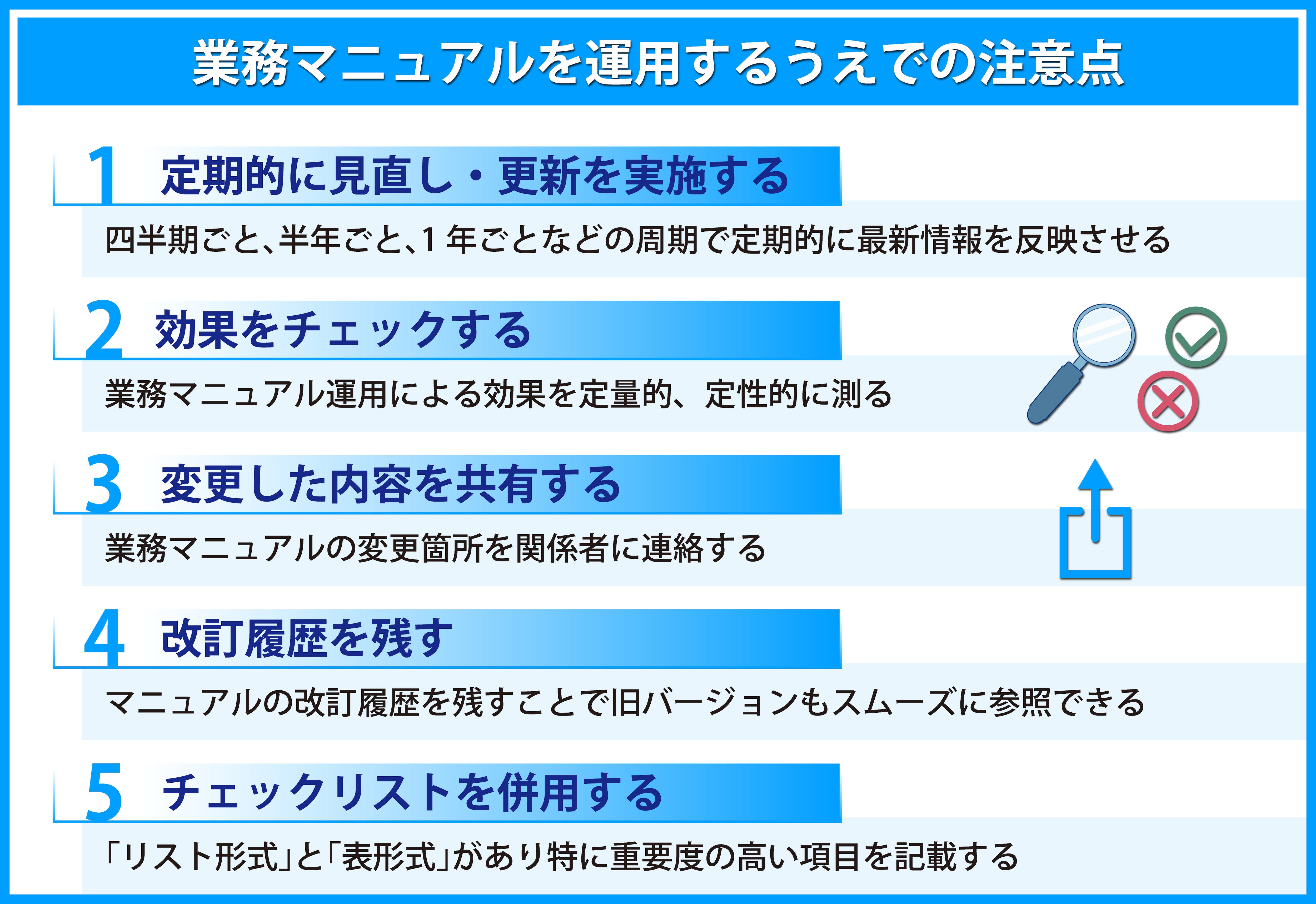 ここからは、業務マニュアルを運用する上での注意点を見ていきましょう。