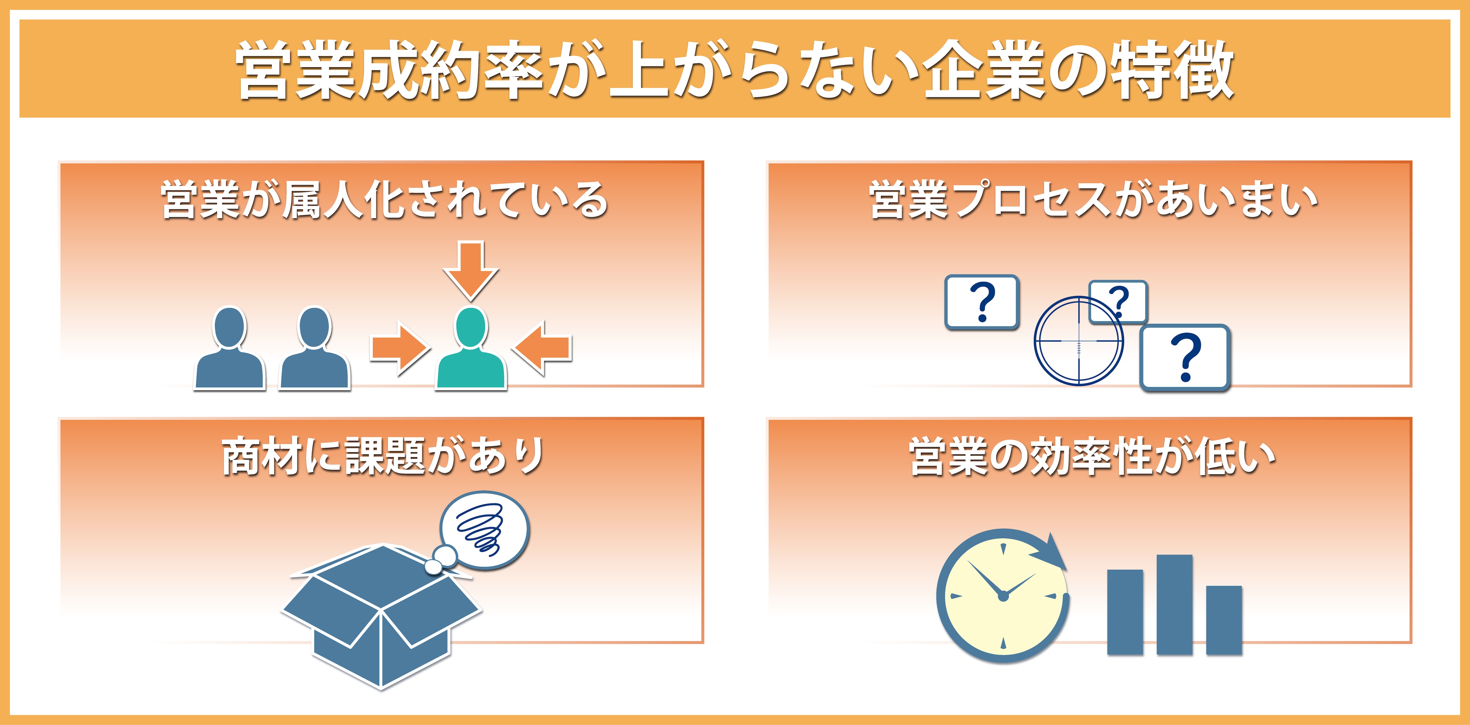 - 提供している商材に課題があり、営業力にかかわらず成約しにくい