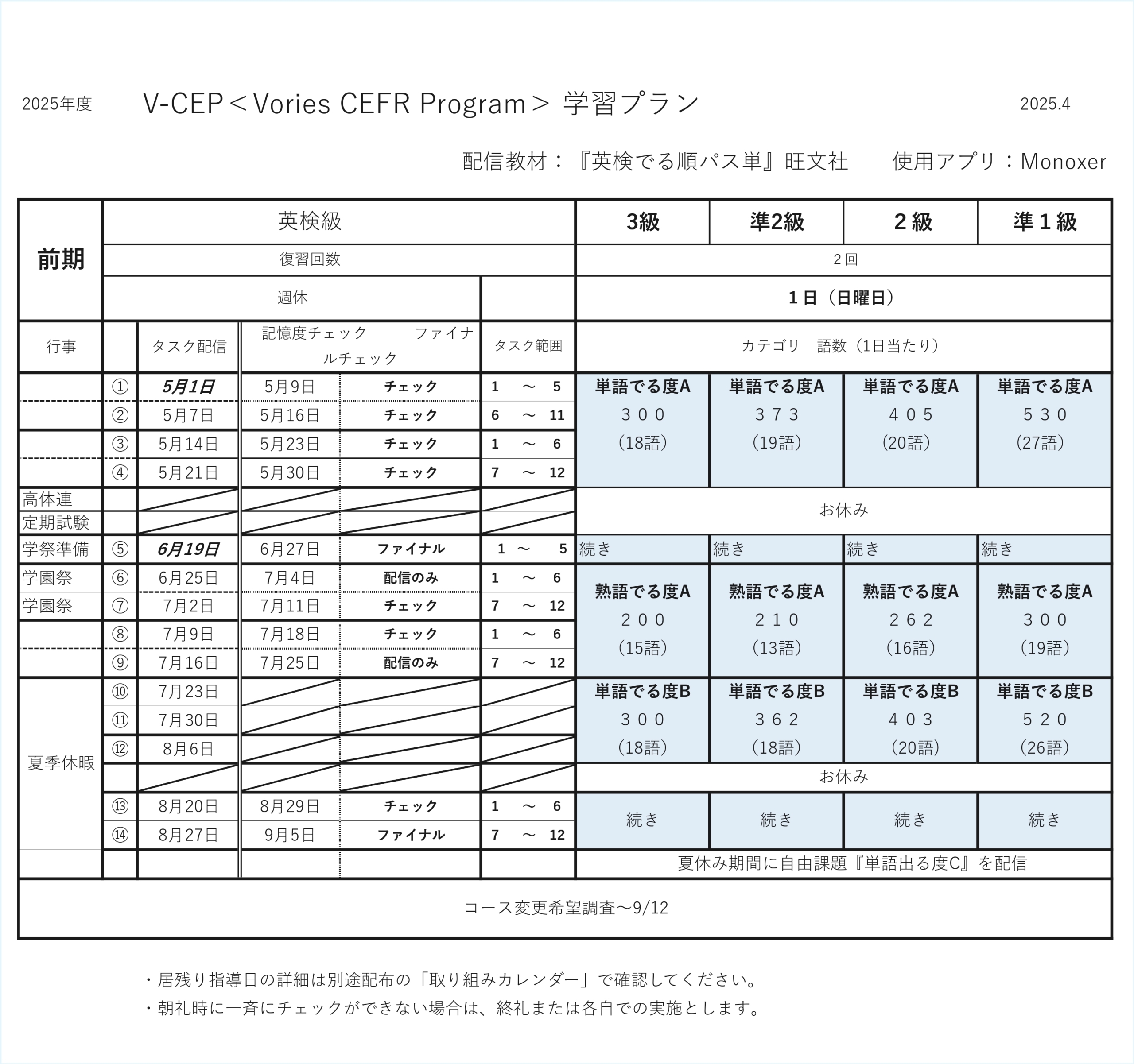 Monoxerを活用した学習時間は、1日10~15分程度を目安とし、短時間でコツコツ進められる学習方法が、同校の部活動との両立にも適し、無理なく続けられる学習習慣として定着しました。さらに、一週間単位で記憶定着具合を確認し、必要に応じて補習やフォローを実施するなど、データと実践を組み合わせたサポートを継続しています。