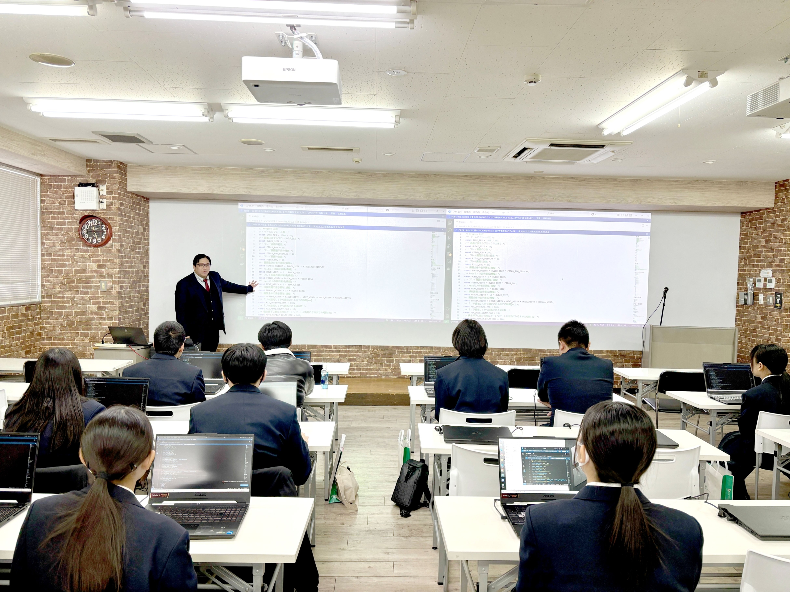 同校では、ITエンジニアの登竜門とも言われている国家試験「基本情報技術者試験」※1の合格を重視しており、1年次には「基本情報技術者試験」の「科目A試験」の免除試験※2の合格を目指したカリキュラムを組み立てています。